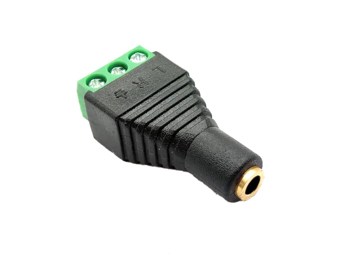This is a 3.5mm (1/8") 3-pole stereo audio male plug and female jack terminal block. It requires "no soldering", so you can easily connect your wires with the help screws on the terminal block.