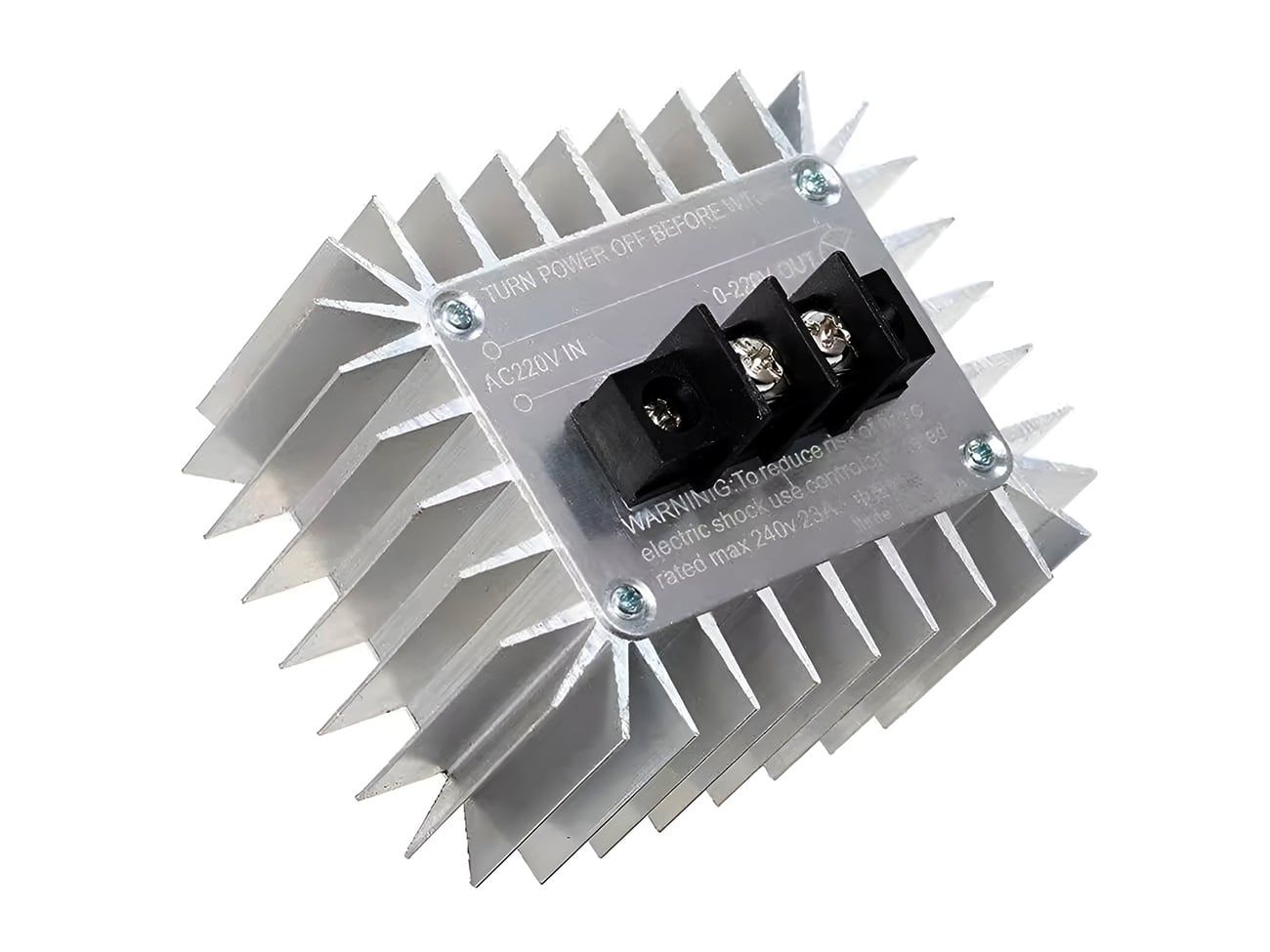 This is a 5000W 220V AC high power SCR thyristor based dimming voltage regualtor. It has an adjustable voltage range from 0V to 220V (AC) and provide efficiency upto 90%.