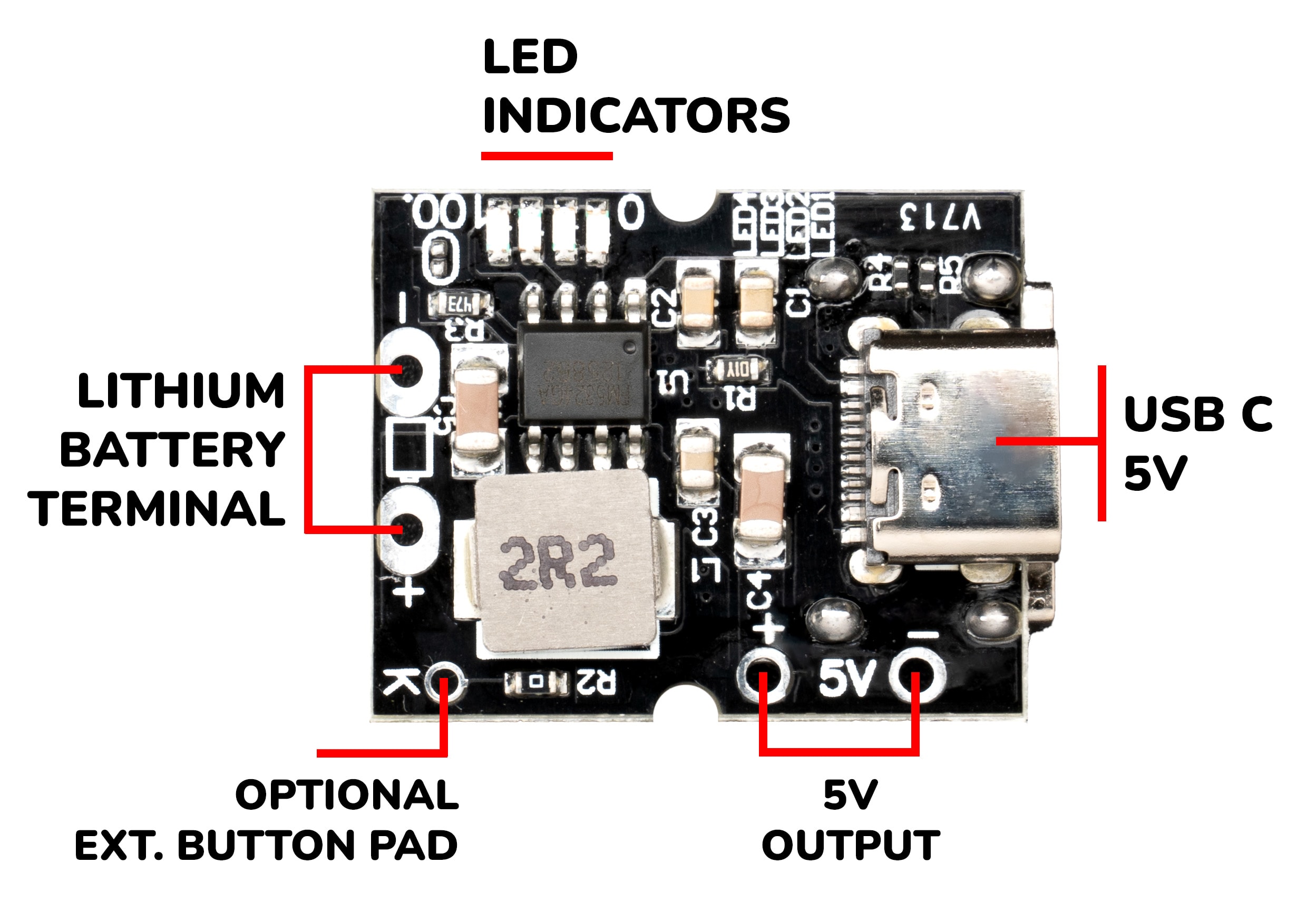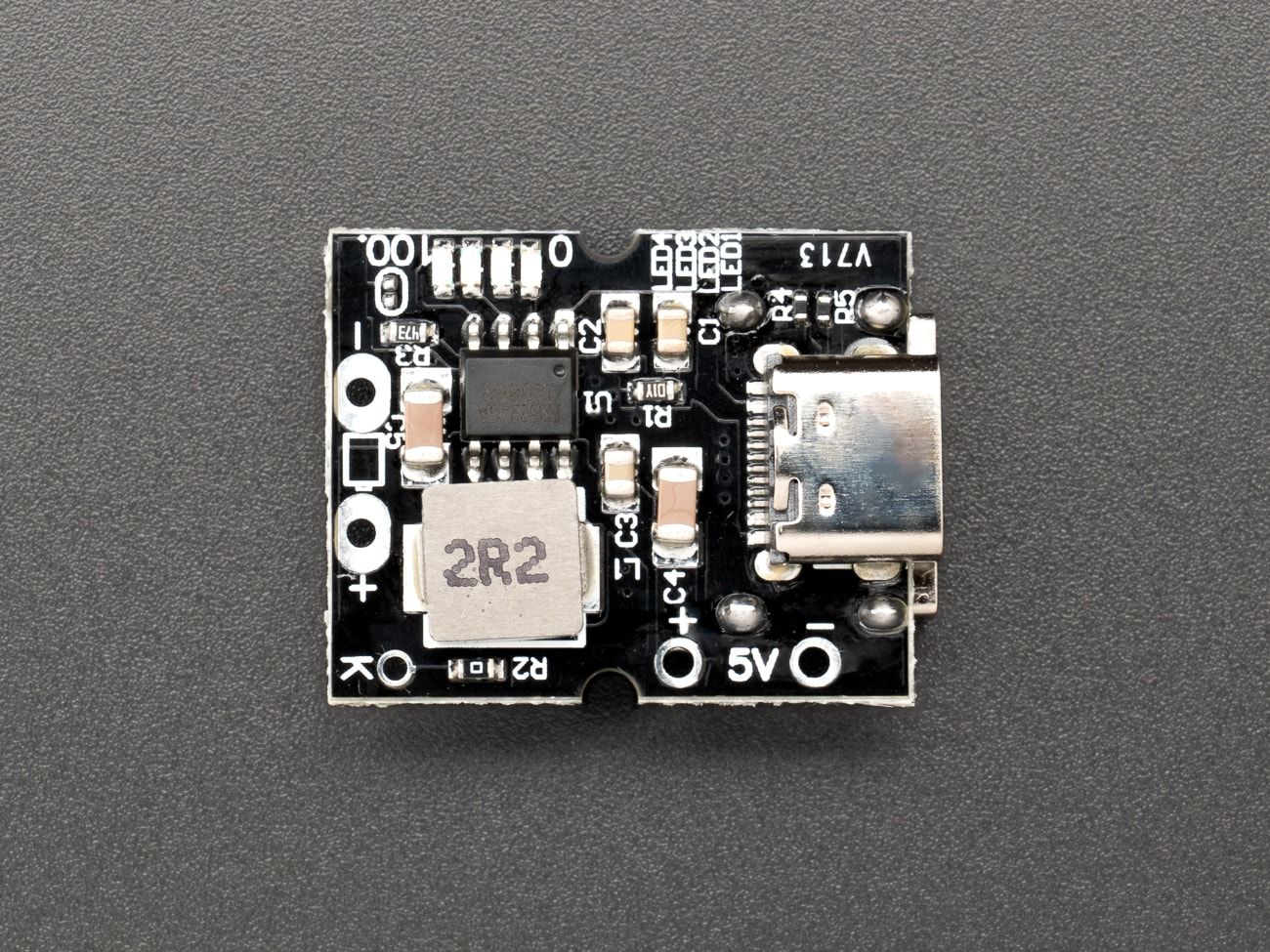 When in step-up boost mode the module outputs a stable 5V to 5.15V DC from 3.6V DC of a lithium battery, compensating for cable losses. The output voltage ripple is kept to a minimum of 100mV, ensuring smooth output voltage. The module claims a high conversion efficiency of 92.5% (at 3.6V input, 5V 2A output), minimizing power loss.