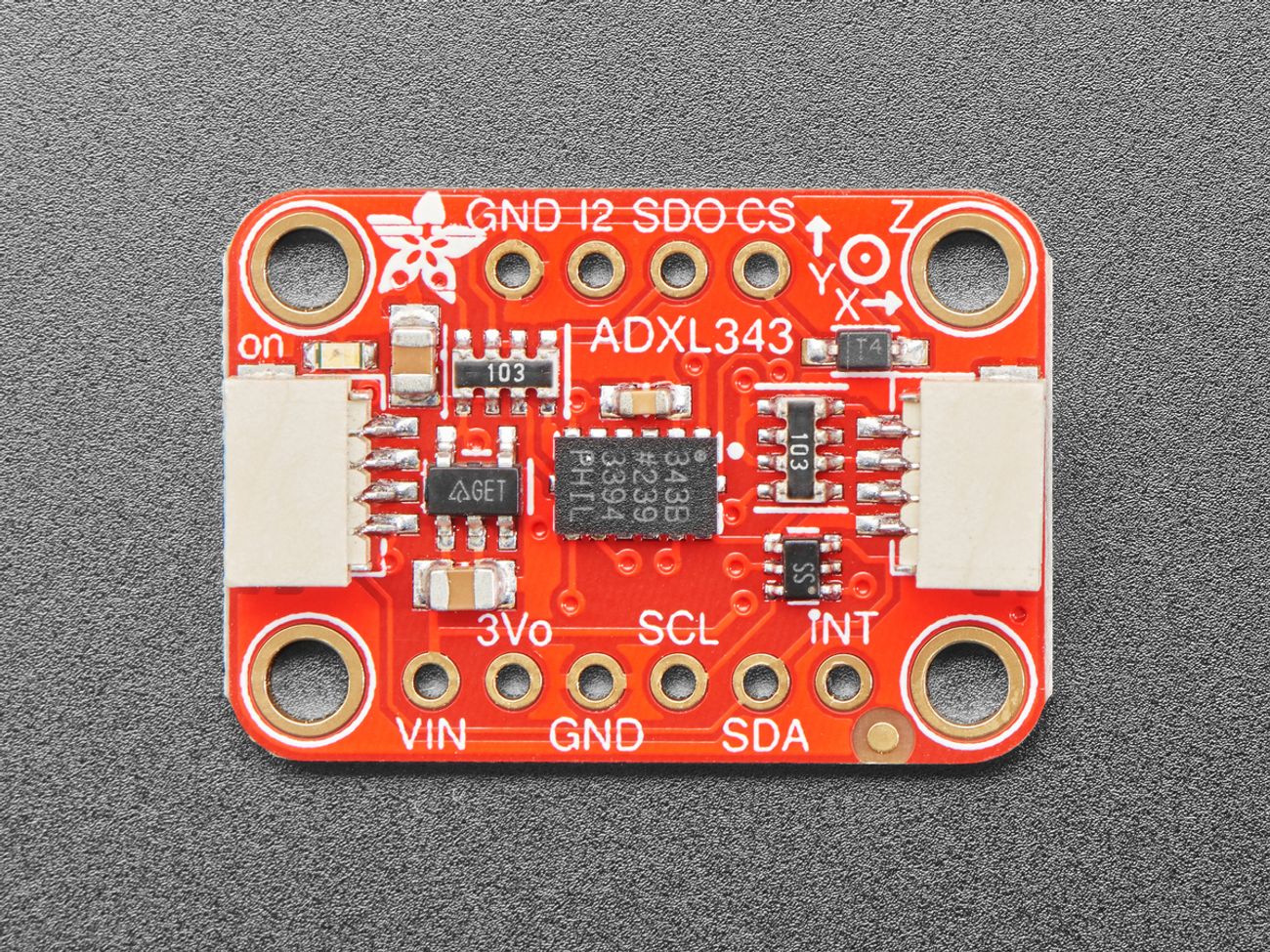 ADXL343 Triple-axis digital accelerometer breakout for motion, tap, activity, and free-fall detection.