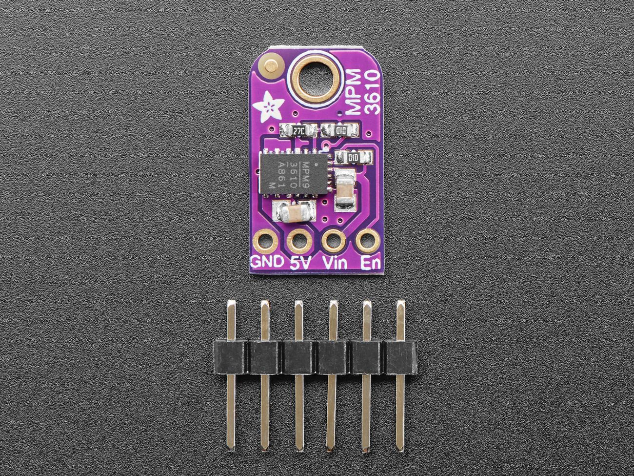 Each board comes fully assembled and tested, with header pins included for easy breadboard prototyping. This makes the MPM3610 breakout a reliable and convenient solution for powering 5V logic, microcontrollers, sensors, and peripherals from higher-voltage sources.