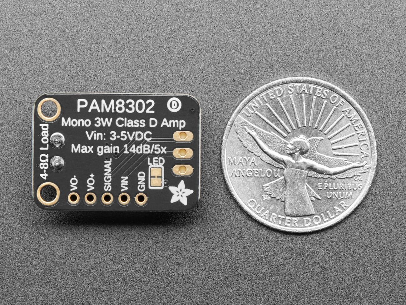 The Adafruit PAM8302 STEMMA Mono 2.5W Class D Audio Amplifier is a tiny yet capable audio amplifier designed to drive real speakers directly from low-voltage projects. Powered by an efficient Class D amplifier core, it delivers up to 2.5W of mono output into 4–8Ω speakers while operating from a wide 2.0V–5.5V supply, making it an excellent choice for battery-powered and portable builds.