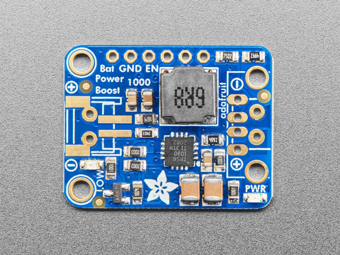 The Adafruit PowerBoost 1000 is a compact, high-efficiency DC/DC boost converter designed for power-hungry portable projects. It boosts battery inputs as low as 1.8V up to a stable 5.2V, providing extra headroom to prevent brown-outs while remaining safe for all 5V electronics.