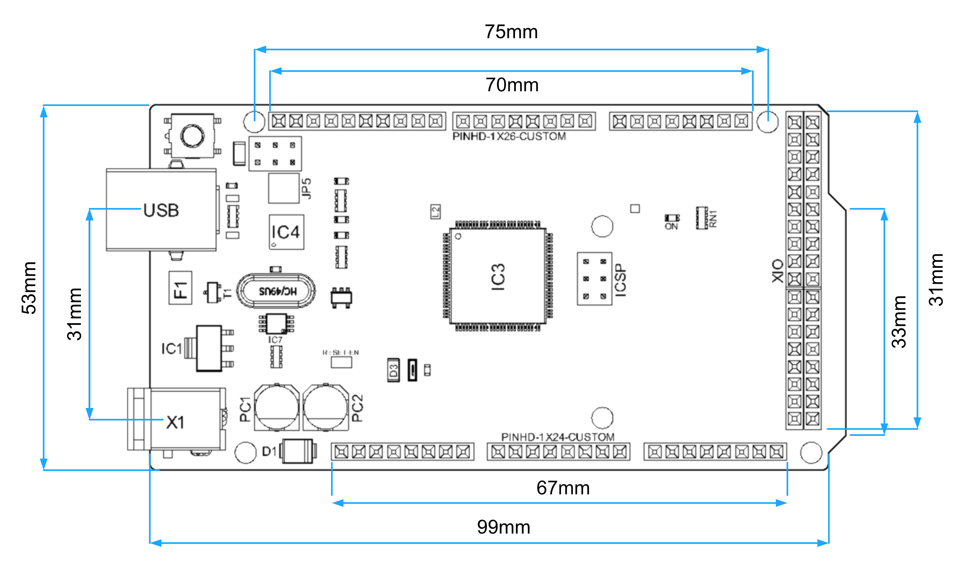 | Communication | 1x USB (Programming Port) 4x UART 1x I2C 1x SPI |