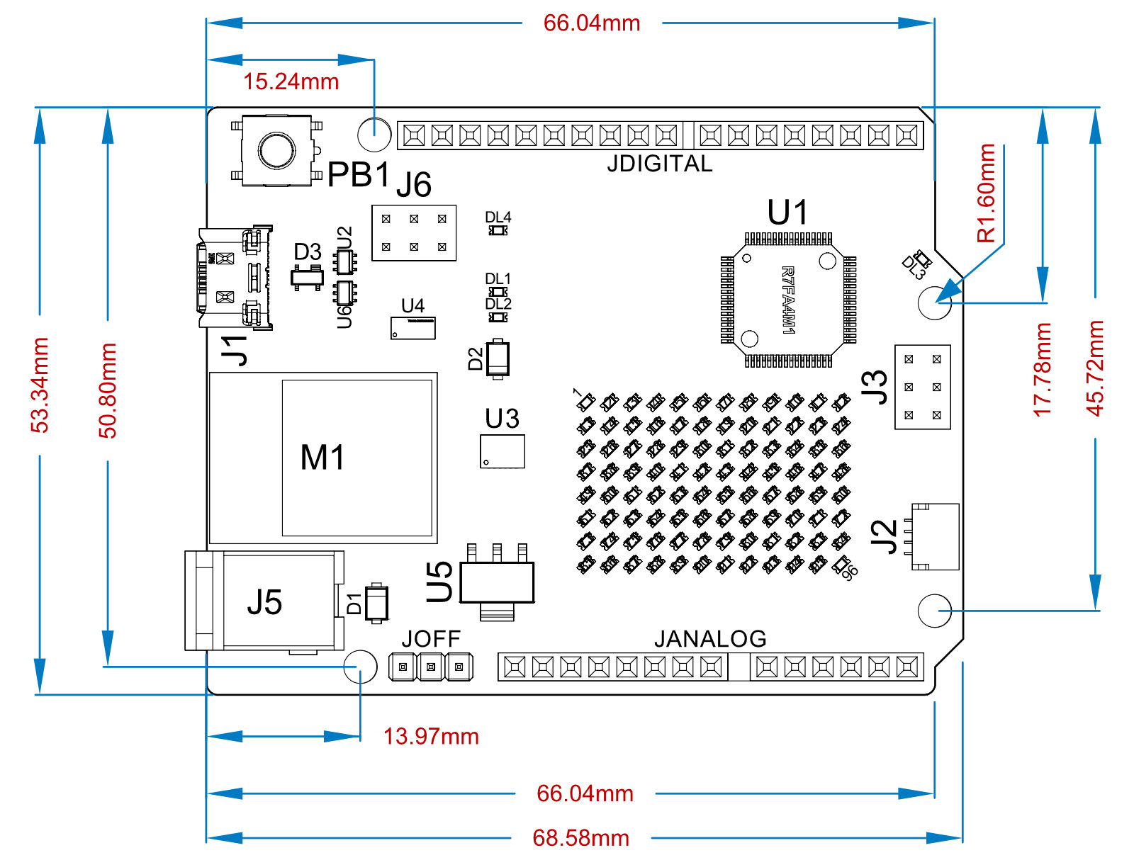 | U1 | R7FA4M1AB3CFM#AA0 Microcontroller IC |