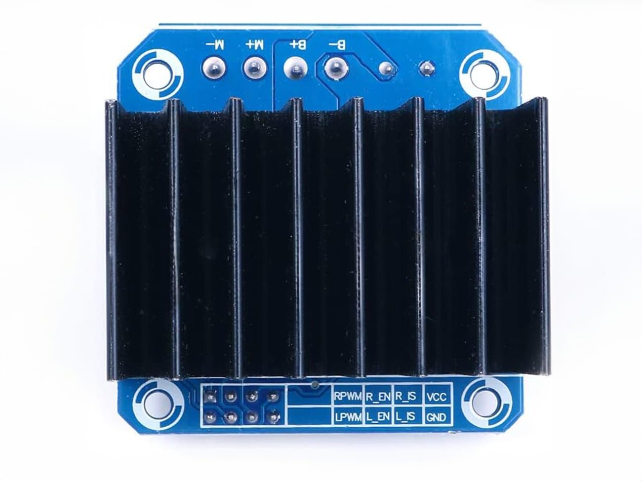 The BTS7960 Motor Driver Module is a high-power, H-bridge motor driver designed to handle 43A of continuous current and operates with input voltages from 5.5V to 27V making it suitable for driving large motors.