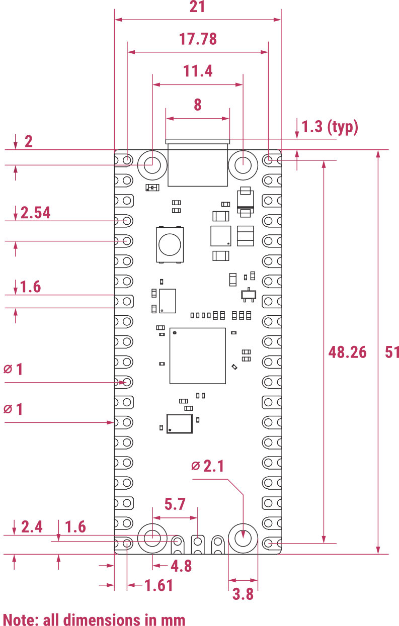| Memory | 264KB on-chip SRAM 2MB on-board QSPI flash |